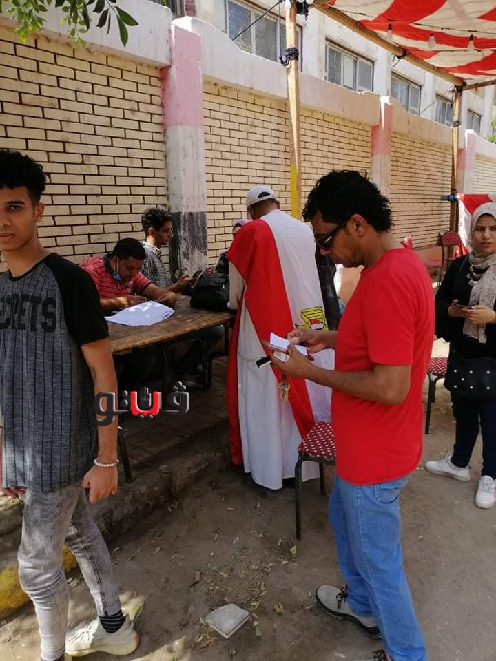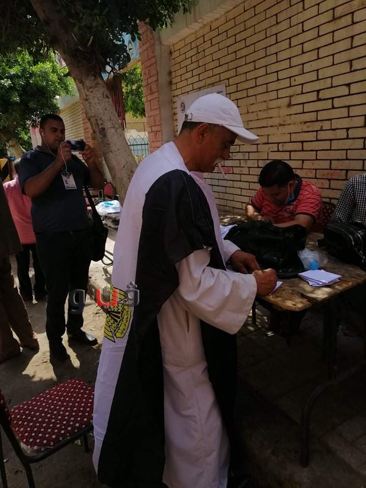 مواطن يدلي بصوته مرتديا جلباب بعلم مصر في بنها| صور