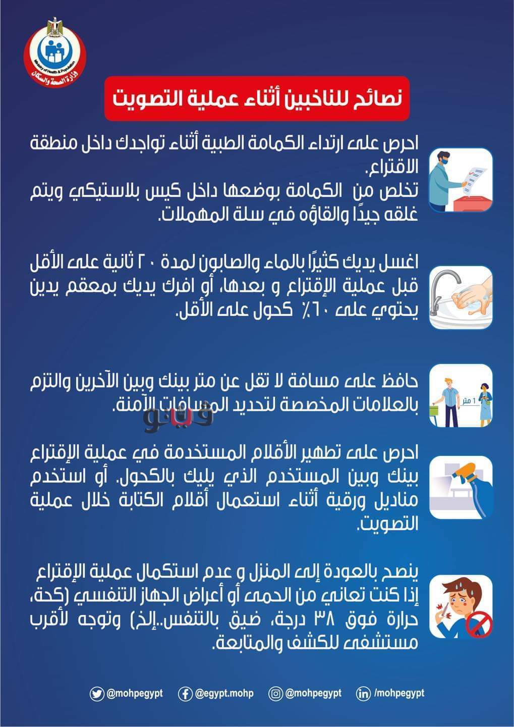 ١- ارتداء الكمامة الطبية داخل مقر الاقتراع
