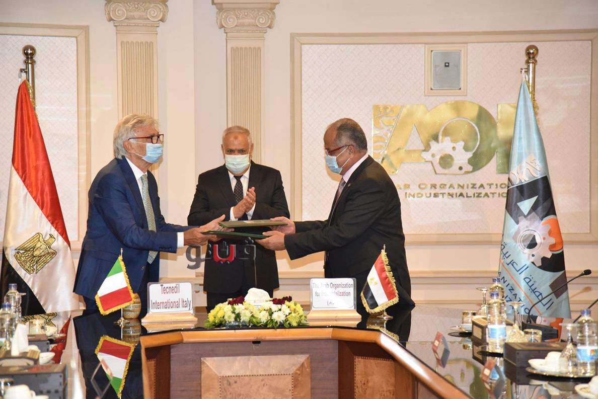 جاء هذا خلال توقيع عقد بين الهيئة العربية للتصنيع ومجموعة تكنيدل الإيطالية العالمية لإنشاء مصنع إنتاج السرنجات الآمنة ذاتية التعطيل .
