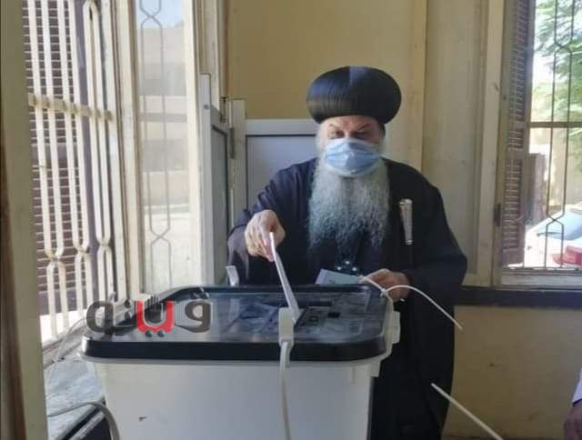 أدلى الأنبا أغاثون أسقف كرسي مغاغة والعدوة، بصوته الانتخابي