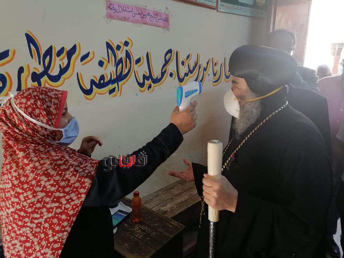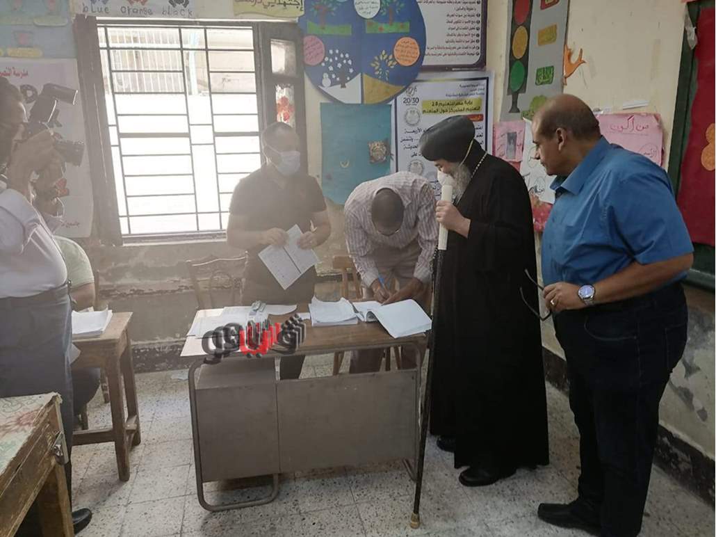 مرتديا الكمامة.. مطران أسيوط يدلى بصوته فى انتخابات مجلس الشيوخ | صور