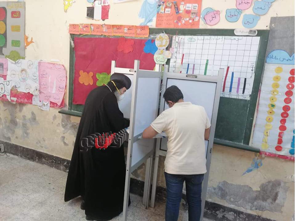أدلي الأنبا يؤانس مطران أسيوط والأقباط الأرثوذكس منذ قليل بصوته الانتخابي في انتخابات مجلس الشيوخ بإحدي اللجان الفرعية بمدينة أسيوط بمدرسة النصر الابتدائية المشتركة ملتزما بالإجراءات الاحترازية ومرتديا الكمامة لمكافحة العدوي بفيروس كورونا.