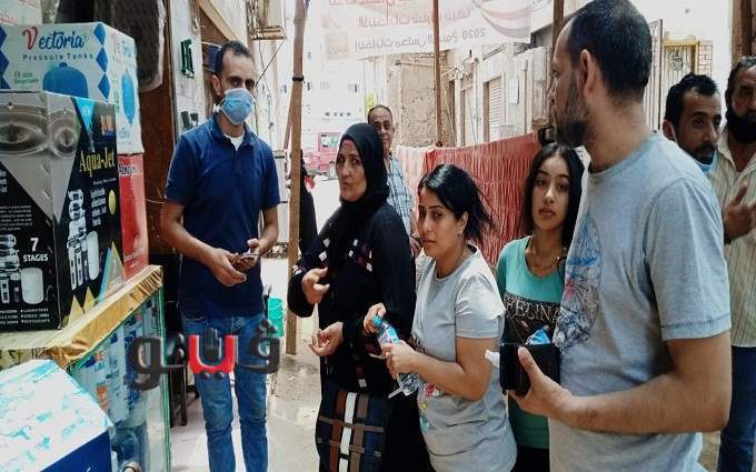 المتطوعات بتوزيع زجاجات المياه والأعلام أمام لجنة أحمد عرابي الثانويه بمدينة الزقازيق