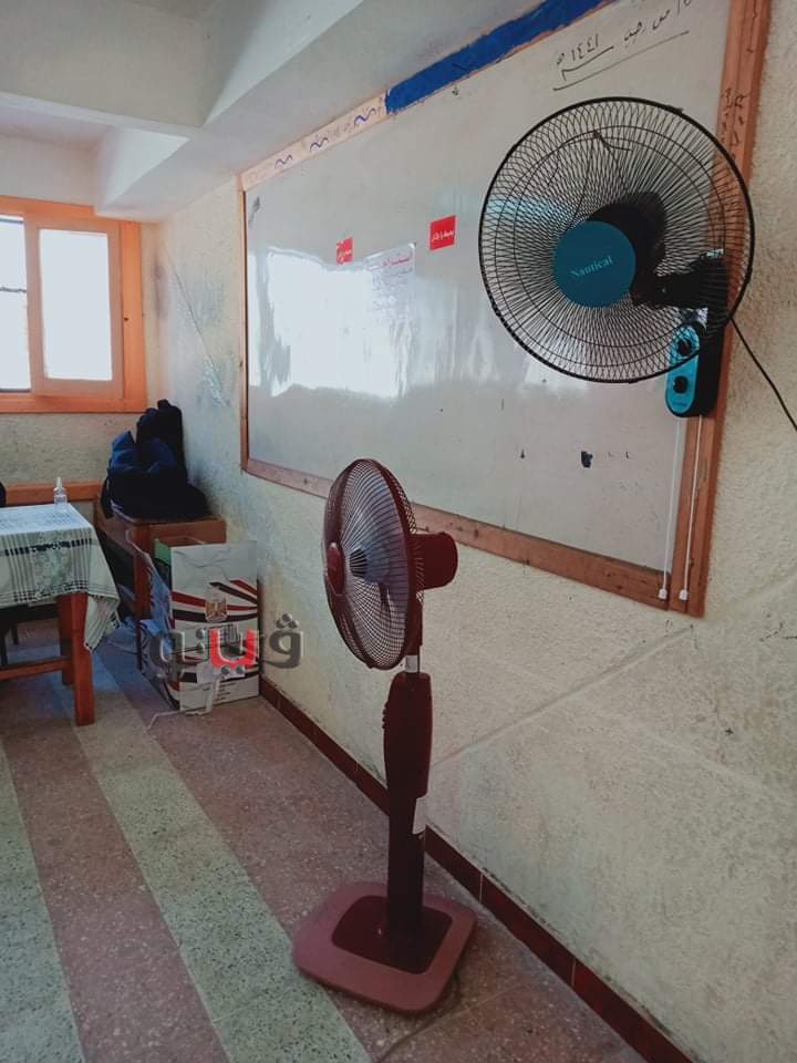 حيث رش العاملون بالمدرسة المياة بالطرقات والبوابة الرئيسية لدخول الناخبين ووضع المراوح والتكيفات بداخل اللجان للتغلب على ارتفاع درجات الحرارة خلال الإدلاء بأصواتهم الانتخابية بمجلس الشيوخ.