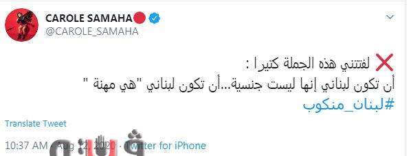 وكتبت كارول، عبر حسابها على تويتر: "أكتر شيء عم يستفزنى هم بعض الإعلاميين والسياسيين اللى عم بيمثلوا اليوم دور المعارضة واللى عم بيوزعو لنا دروس بالوطنية والضمير وهن أكتر ناس دعموا الطبقة السياسية الفاسدة واستفادوا منها ولايزالوا حتى الآن، الإعلام السياسى فى لبنان للأسف مزيف ومسيس، كفا استعراضات".