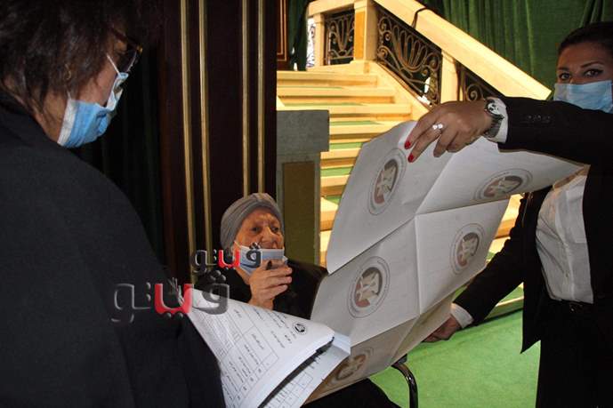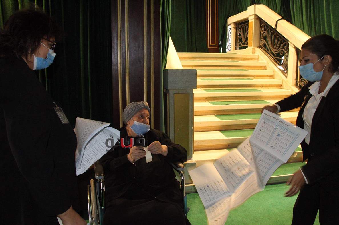 رئيسة لجنة مصطفى أبو عميرة بمصر الجديدة تساعد مسنة للإدلاء بصوتها | صور