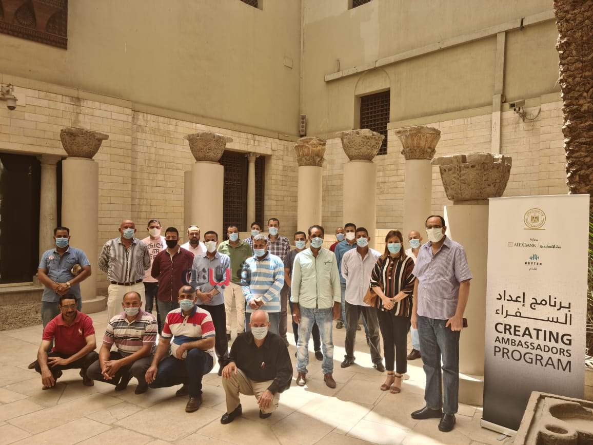 وأشارت إلى أنه تم استئناف الخطة التدريبية للوزارة تحت مسمى "سفراء السياحة" بتمويل من بنك الإسكندرية وتنفيذ مؤسسة "Rythm" التدريبية المعتمدة من Institute" of Hospitality" في المملكة المتحدة والتي تعد المرة الأولى التي يحصل عليها العاملين في المواقع الأثرية والمتاحف من المتعاملين مع السائح على مثل هذه الدورات وذلك بالتعاون مع وحدة تطوير المواقع الأثرية والمتاحف.