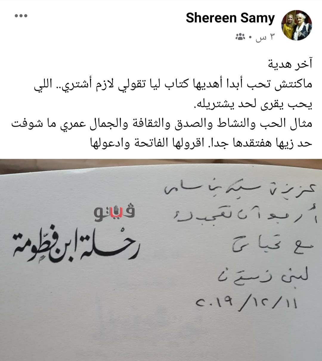 كما نعت الكاتبة شرين سامي رحيل زيتون ,قائلة:"ماكنتش تحب أبدا أهديها كلنت تقولي لازم أشتري .. اللي يحب يقرأ لحد يشتريله".