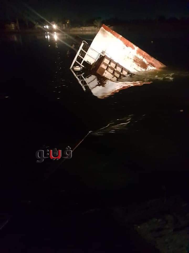 غرق معدية لنقل الركاب والسيارات بترعة في البحيرة | صور