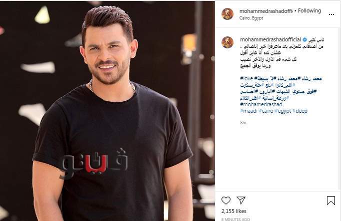 ونشر رشاد صورة له وعلق عليها قائلاً «ناس كتير من أصدقائى كلمونى بعد ماعرفوا خبر إنفصالي .. عشان كده أنا عايز أقول كل شىء فى الأول والآخر نصيب وربنا يوفق الجميع».