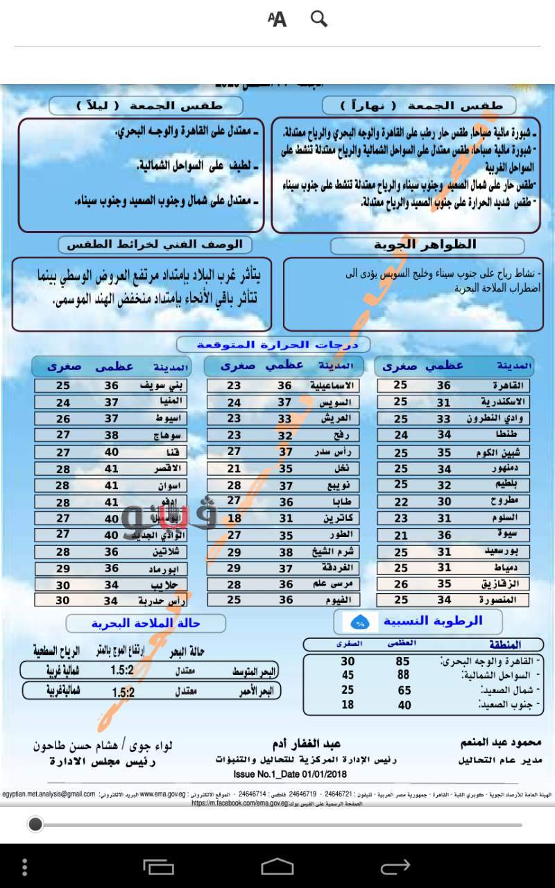 وفيما يلى بيان بدرجات الحرارة المتوقعة اليوم على مدن ومحافظات مصر..