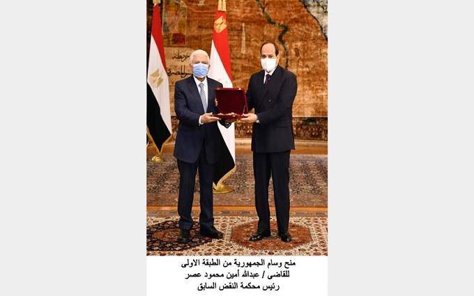 كما قام الرئيس بمنح وسام الجمهورية من الطبقة الأولى للقاضي عبد الله أمين محمود عصر، رئيس محكمة النقض السابق.