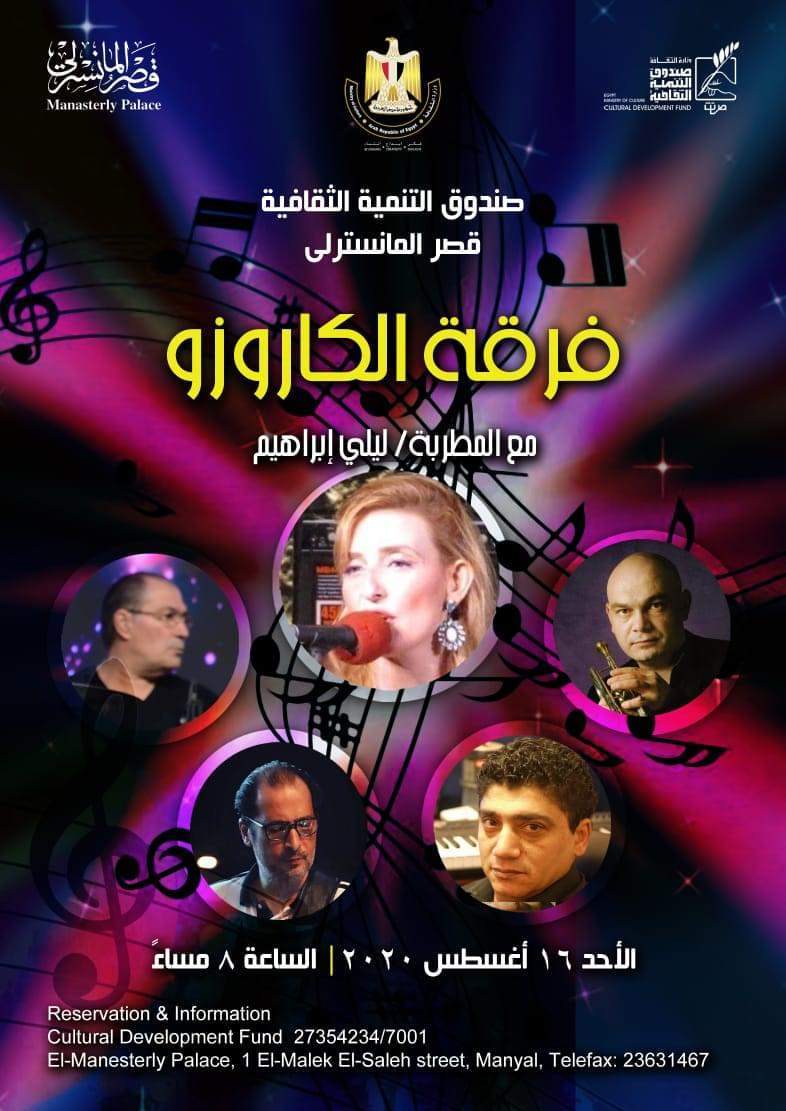 يستقبل مسرح الحديقة الصيفي بقصر المانسترلي بالمنيل، والتابع لقطاع صندوق التنمية الثقافية، حفل الميتسوسبرانو ليلى إبراهيم ومجموعتها "كاروزو"، وذلك فى الثامنة من مساء الأحد المقبل الموافق 16 أغسطس الجاري.