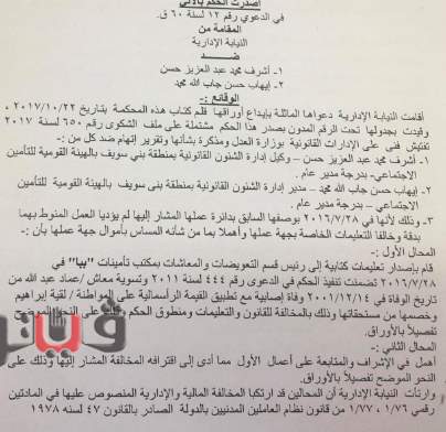 مجازاة مدير ووكيل الشئون القانونية في تأمينات بني سويف