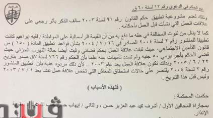 ببا في 28 يوليو 2016 تضمنت تنفيذ الحكم في الدعوى رقم 444 لسنة 2011 وتسوية معاش