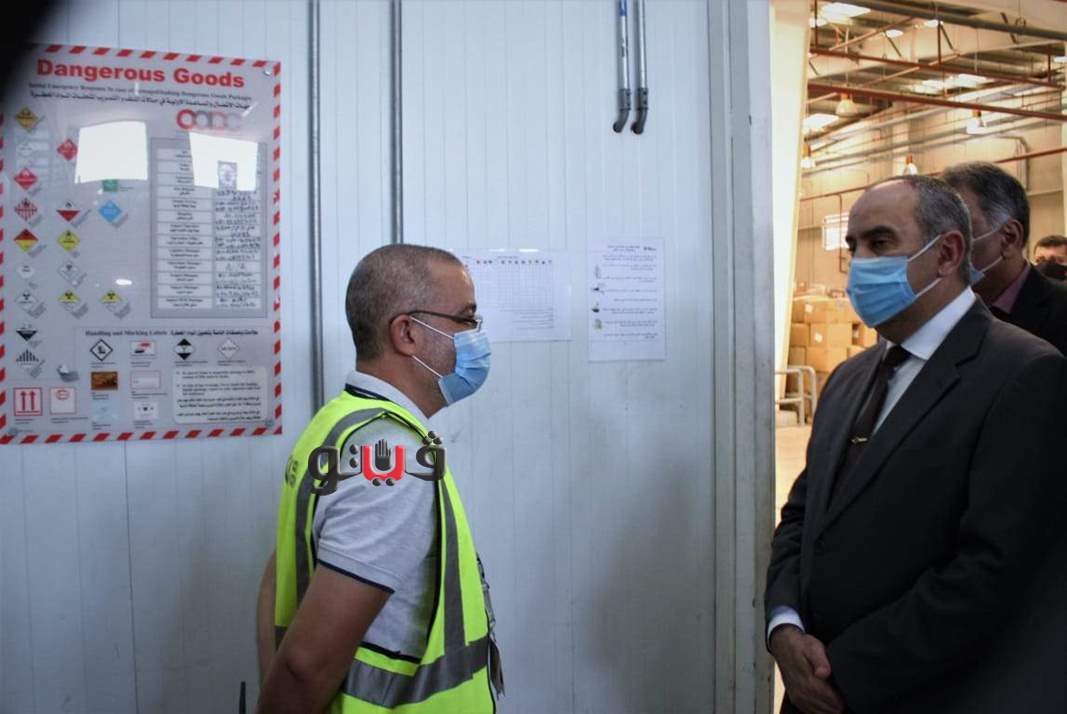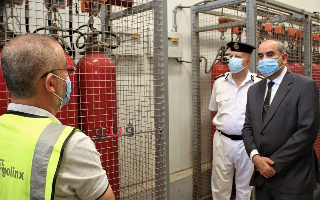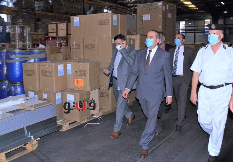 وإطمئن الوزير علي تطبيق المعايير الاحترازية العاجلة واتخاذ كافة إجراءات السلامة والوقاية لضمان جودة مناولة وتخزين السلع والشحنات، ووجه بضروره التدقيق التام وتوفير كافة الوسائل الأمنية لضمان أقصى مستوى أمان فى تخزين ونقل البضائع.