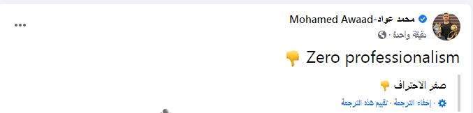 نشر محمد عواد حارس مرمي الفريق الأول لكرة القدم بنادي الزمالك، عبر حسابه الشخصي تويته حيث كتب : « صفر الإحتراف».