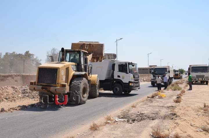 و تم الدفع بعدد من سيارات نقل ، وخمس لوادر، قامت برفع و إزالة كافة تجمعات الرتش و القمامة ، و المخلفات بطول الطريق خلف أسوار الجامعة القديمة بداية من منطقة مزلقان سكة حديد الشيخ زايد ، وصولا إلى مزلقان الدوحة والموازى لشريط السكك الحديدية .