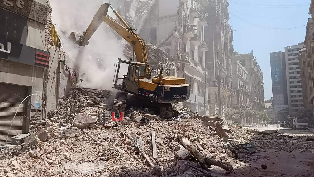 استمرار رفع أنقاض عقار قصر النيل المنهار لليوم الثاني | صور