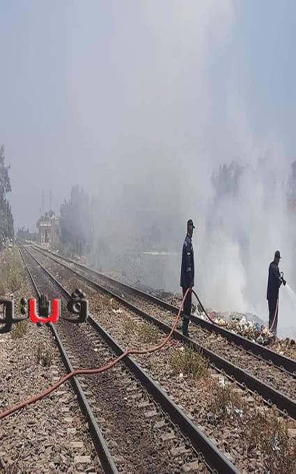 السيطرة علي حريق بطول السكة الحديد بطنطا | صور