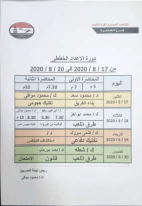وتقام دورة الإعداد الخططى للمدربين استكمالا لبرنامج الدورات المتخصصة والتى تنظمها منطقة القاهرة ومتابعة تنفيذية من لجنة المدربين بالمنطقة بقيادة محمود موافى وأعضاء اللجنة ومحمد طه مقرر اللجنة وتحت إشراف اللجنة الفنية باتحاد الكرة برئاسة الدكتور محمود سعد.