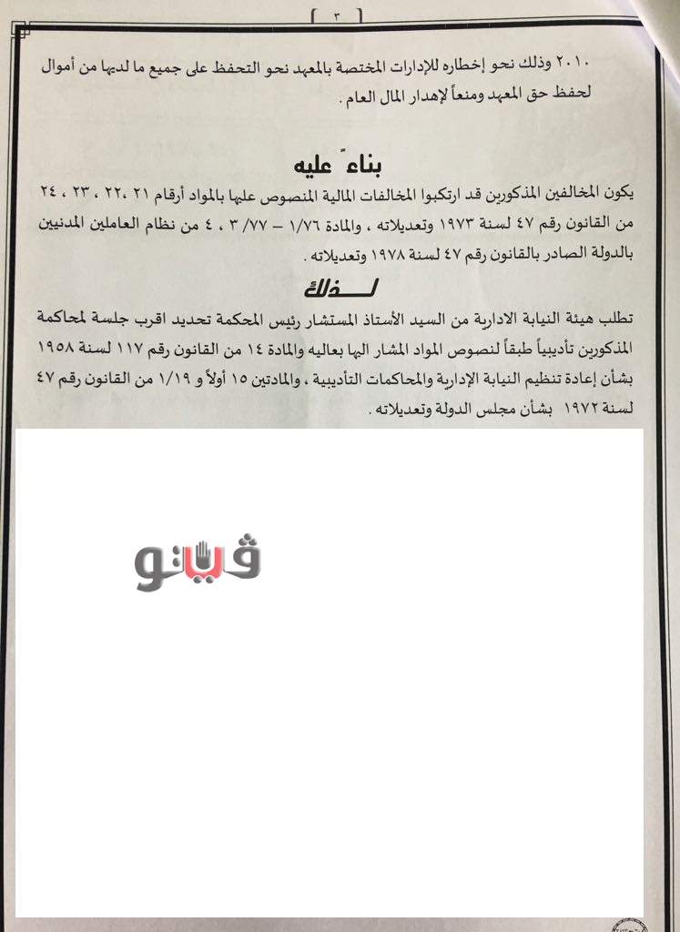 ولم يتخذ الإجراءات الاحترازية التي تحفظ حق المعهد رغم علمه بصدور حكم محكمة الجنايات عن طريق خطاب نيابة جنوب القاهرة وعلى نحو إخطاره للإدارات المختصة بالمعهد للتحفظ على جميع ما لديها من أموال لحفظ حق المعهد منعا لإهدار المال العام.