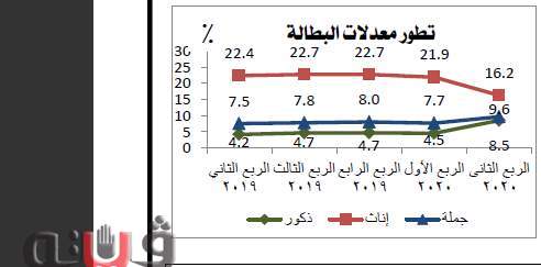 يرصد نتائج بحث القوى العاملة للربع الثاني (إبريل - يونيو) لعام 2020، الصادر عن الجهاز المركزي للتعبئة العامة والإحصاء تطورات معدلات البطالة فى مصر فى الفترات التالية " الربع الثاني والثالث والرابع من 2019 والربع الأول والثاني من 2020".