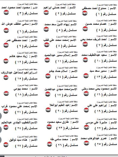 يذكر أن لجنة المدربين بمنطقة القاهرة تضم محمود موافي رئيس للجنة وعضوية كل من: جمال السيد وعلي محروس و عصام سيف وعاطف عطية وعبدالله عبدالغني ومحمد حسين وجيمس حنا ومحمد طه مقرر اللجنة.