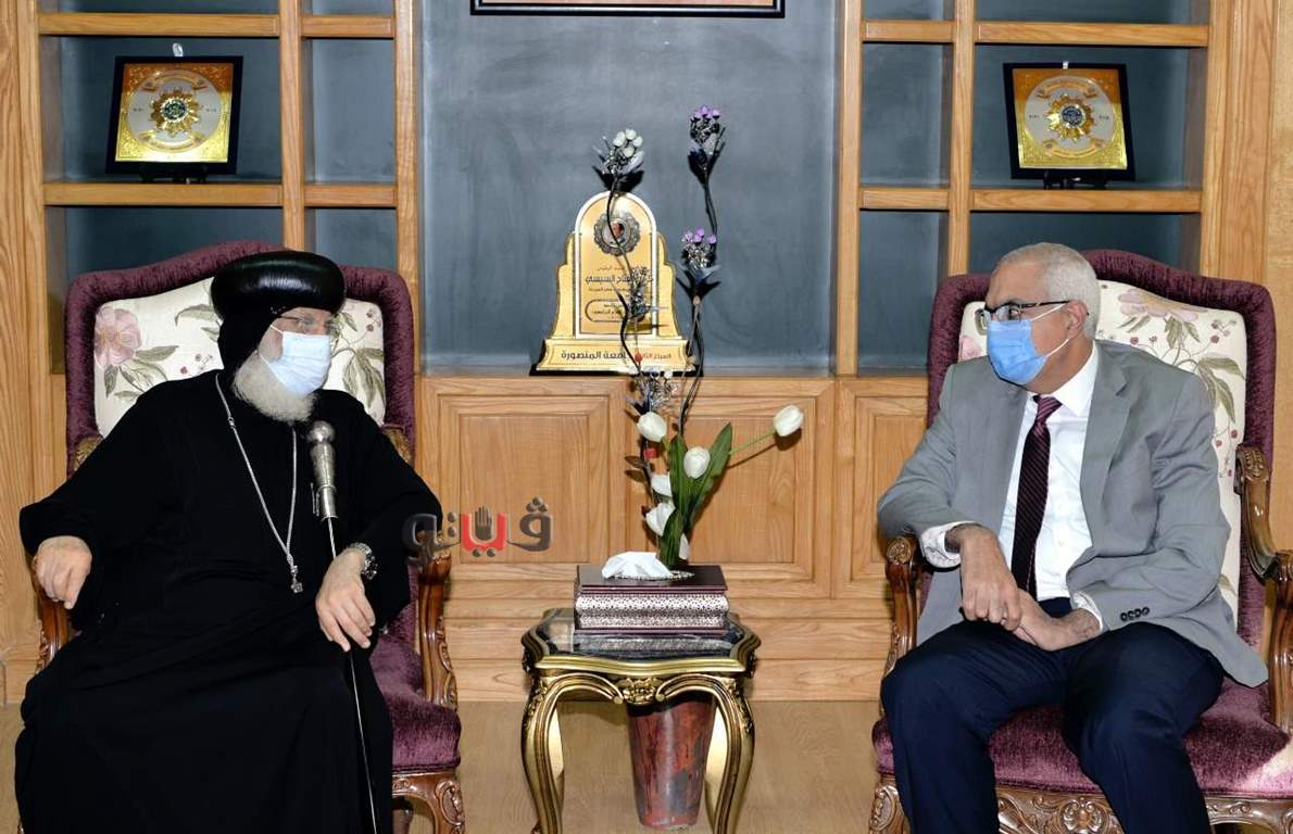 ومن جانبه تقدم نيافة الأنبا داوود الوفد الكنسي بالتهنئة لرئيس الجامعة مؤكدا على الدور الهام الذى تنفذه الجامعة لخدمة المجتمع فى قطاعات التعليم والتدريب والبحث العلمي خدمة المجتمع داخل محافظة الدقهلية والخدمات الطبية التى تغطى قطاع الدلتا وتميز الجامعة فى شتى المحافل الدولية .