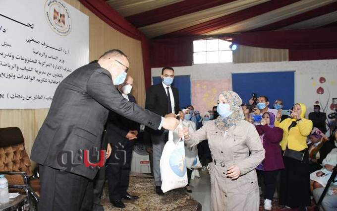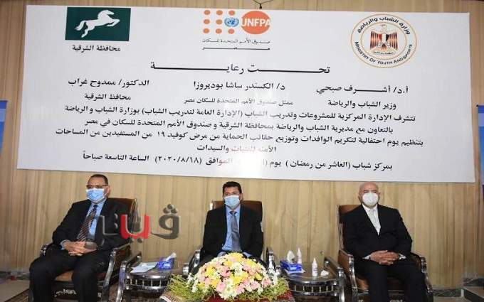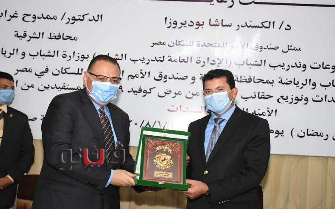 شهد الدكتور أشرف صبحي وزير الشباب والرياضة والدكتور ممدوح غراب محافظ الشرقية إحتفالية تكريم وتوزيع حقائب الحماية من فيروس كورونا " كوفيد 19 " للمستفيدين من المساحات الأمنة للفتيات والسيدات الوافدات من الدول العربية.