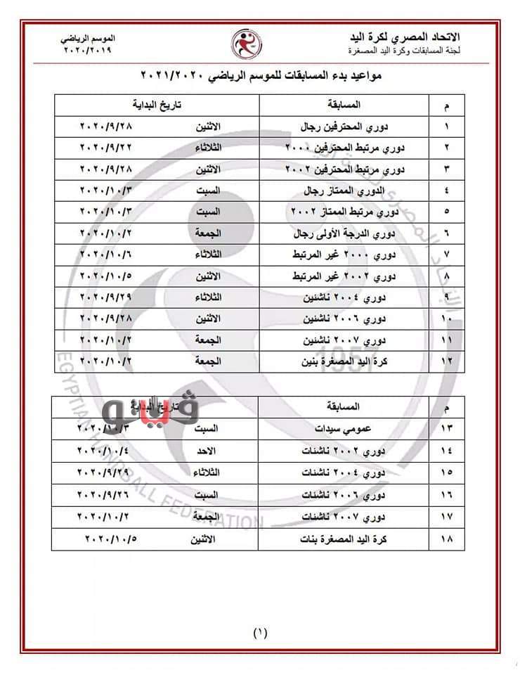 أعلن مسئولو اتحاد كرة اليد برئاسة المهندس هشام نصر، مواعيد انطلاق الموسم الجديد 2020/2021.