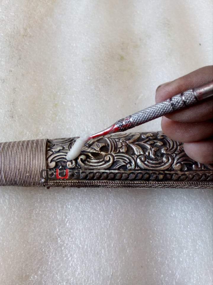 وبهذا الخنجر المطعم بالياقوت تكتمل مجموعة نادرة من الآثار المعدنية المطعمة لإثراء العرض المتحفي لمتحف المركبات الملكية، وعلى الفور تم تشكيل فريق ترميم متخصص للبدء فى أعمال الفحص و الترميم للخنجر.