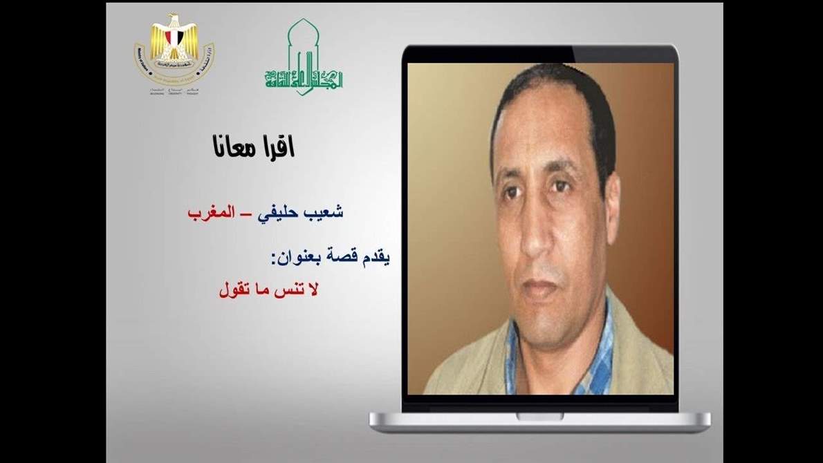 يستضيف المجلس الأعلى للثقافة في الثامنة والنصف من مساء يوم الخميس الموافق 27 أغسطس الجاري، الكاتب والروائي والقاص المغربي شعيب حليفي، ليقرأ قصة قصيرة بعنوان " لا تنس ما تقول " الصادرة عن دار الهلال في العام الماضي، وذلك عبر قناة أمانة المؤتمرات بالمجلس على موقع الفيديوهات الشهير "يوتيوب".