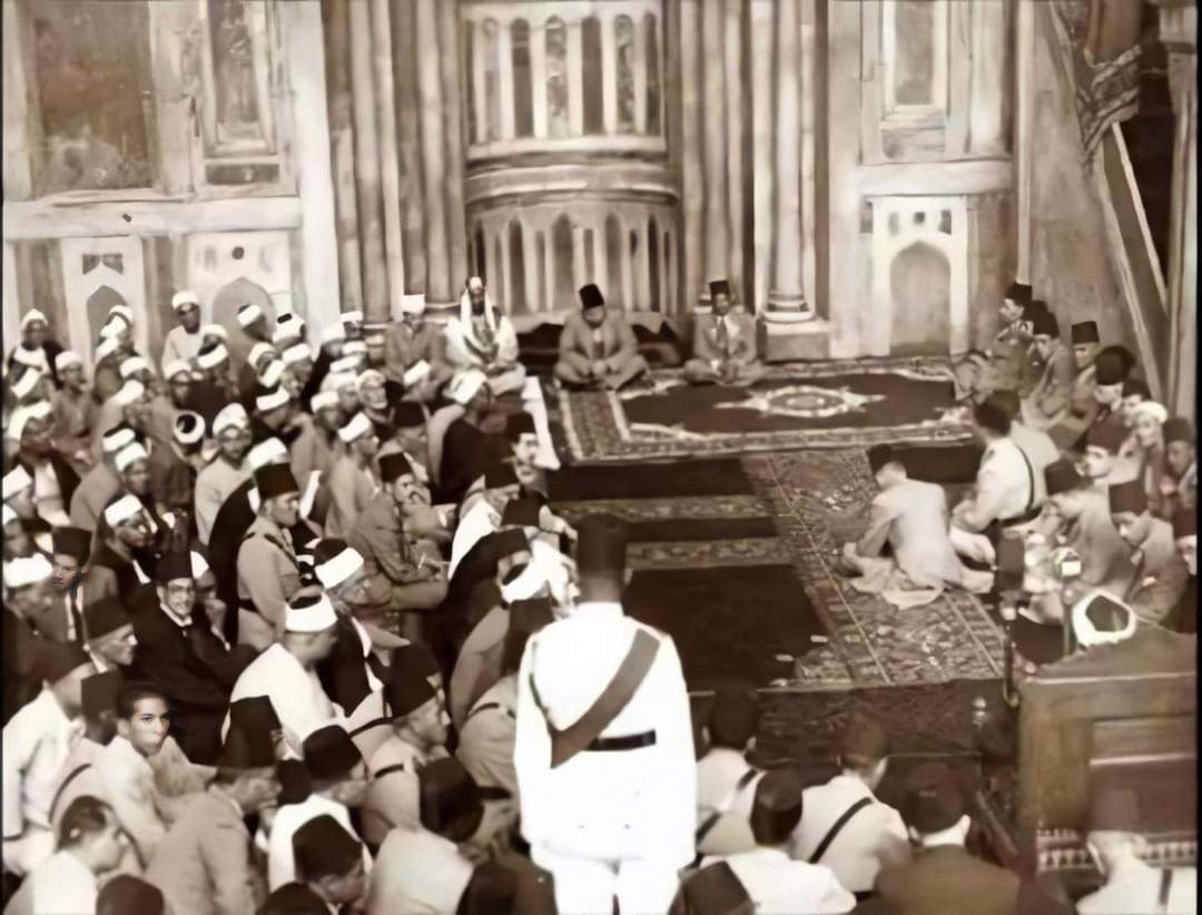 تداول رواد موقع التواصل الاجتماعي "فيس بوك"، صورة تظهر احتفال الملك فاروق الأول برأس العام الهجري 1362، والموافق لعام 1943م، وذلك بالجامع الأزهر.