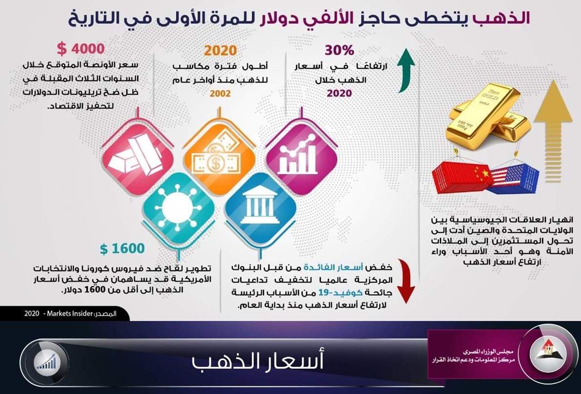 الذهب يتخطى حاجز الألفي دولار للمرة الأولى في التاريخ| انفوجراف الخميس 20/أغسطس/2020 - 08:25 م 8/20/2020 8:25:17 PM الذهب أحمد رأفت شارك طباعة 18 حجم الخط شارك طباعة اسعار الذهب اليوم أسعار الذهب الذهب