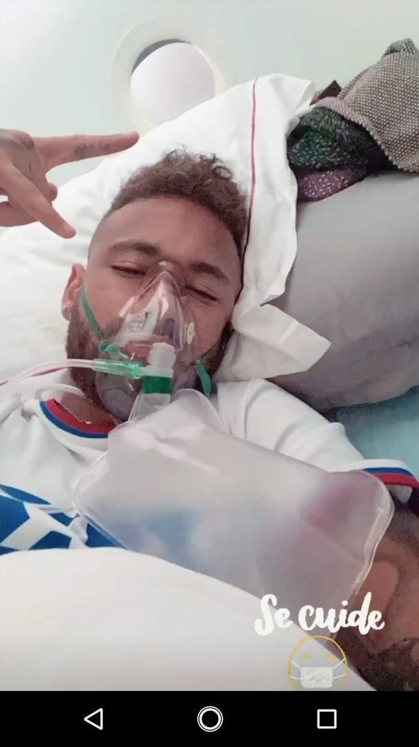 ونشر نيمار صورة عبر حسابه الرسمي عبر خدمة "القصص" أو "Stories" في تطبيق "إنستجرام"، وهو على سرير طبي، مرتديًا قناعًا بلاستيكيًا للتنفس.