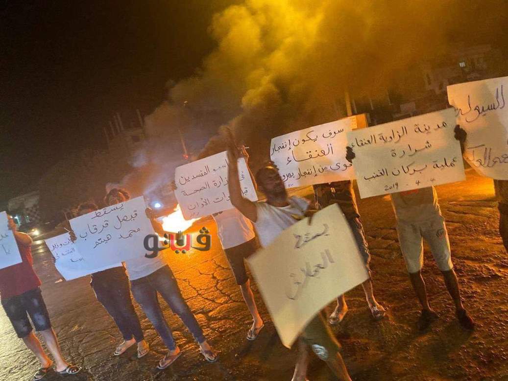 وتشهد مدينة الزاوية حتى الآن حالة احتقان، بعدما أغلق محتجون طرقا وأضرموا النار في إطارات، تنديدا بتجويعهم وللمطالبة بحقهم في الحصول على الرواتب وتوفير المرافق الضرورية وكذلك بتغيير المسؤولين المحليين بالمدينة.