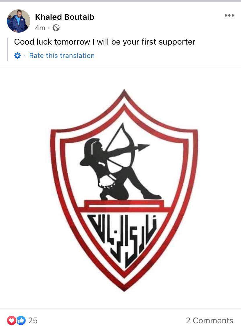 وكتب بوطيب عبر حسابه الشخصي على فيس بوك: "حظ موفق غداً سأكون أول المشجعين".
