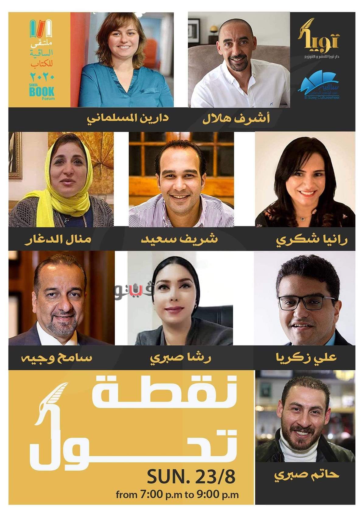 تنظم دار تويا للنشر والتوزيع، محاضرة بعنوان "نقطة تحول"، وتقام في السابعة من مساء الأحد 23 أغسطس الجاري، بقاعة النهر على هامش فعاليات ملتقى الساقية للكتاب 2020، و توفر الدار فرصة للحضور المحاضرة مجاناً.