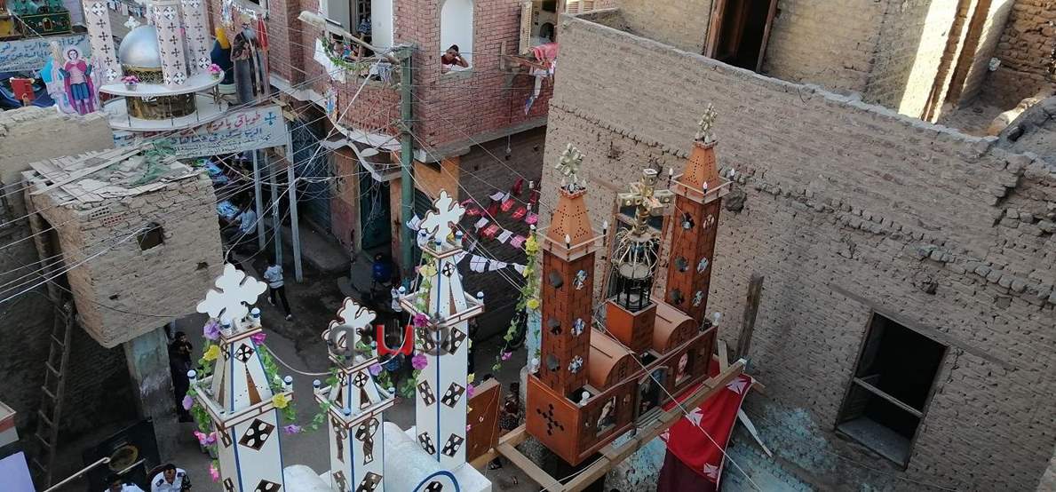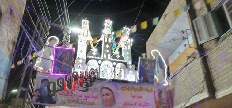 اكتست شوارع قرية السلامية التابعة لايبارشية دشنا كنسيا، بأيقونات وصور السيدة العذراء مريم وزينة المولد، وصور الآباء القديسين والبابا تواضروس الثاني بطريرك الكرازة المرقسية، والأنبا تكلا أسقف مطرانية دشنا.