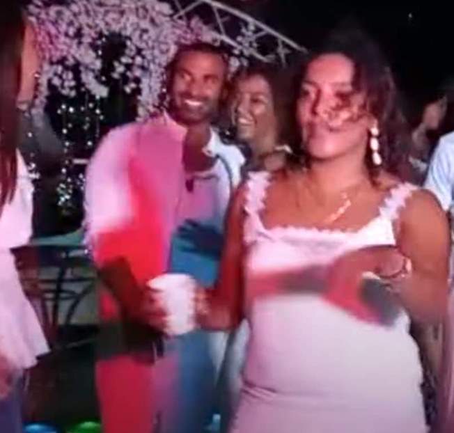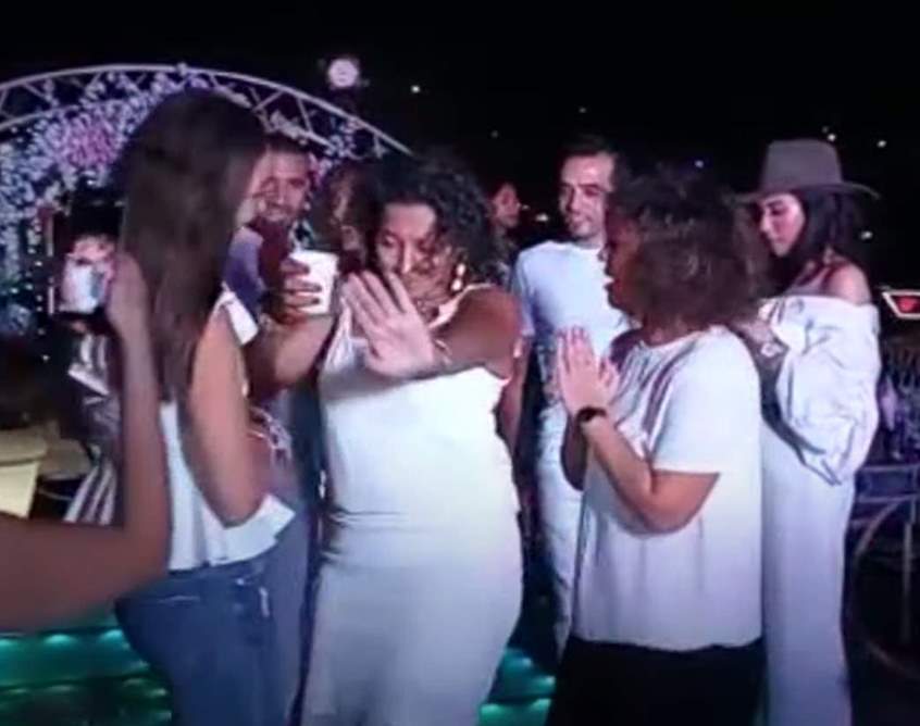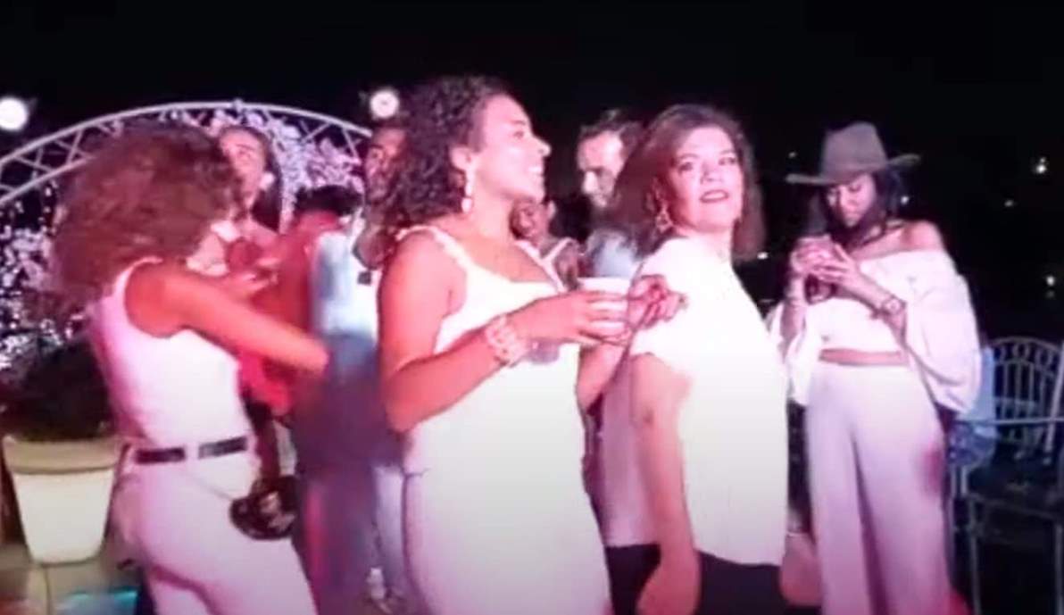 وتراقص الجميع على أغنية "يوم تلات" للهضبة عمرو دياب و"بنت الجيران" لمطربى المهرجانات حسن شاكوش وعمر كمال بحضور عدد كبير من أصدقائهما.