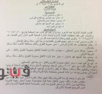 تضمن الحكم أن فكري صبحي أيوب، مدير مجمع الطرق بالقطامية قام بإعداد كراسة الشروط رغم كونه غير مختص بذلك بمفرده دون تشكيل لجنة فنية متخصصة محددا أسعارا وقيمة تقديرية مبالغًا فيها دون التأكد من أسعار السوق؛ مما أضر بالمصلحة المالية لجهة عمله، وتراخي في اتخاذ الإجراءات القانونية اللازمة بشأن تقاعس ورشة الحدادة والخراطة لتصنيع وصيانة خلاط الأسفلت، المسند إليها صيانة خلاط الأسفلت عن استكمال صيانة خلاط الأسفلت.