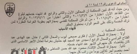 وأصدرت المحكمة حكمها بحضور المستشار فوزي عبد الهادي، ممثل النيابة الإدارية بمجازاة المحالين الأول والثاني والرابع بغرامة تعادل الأجر الأساسي الذي كان يتقاضاه كل منهم في الشهر قبل إنتهاء خدمته، وخصم أجر 30 يومًا من راتب المحالين الثالث والخامس.