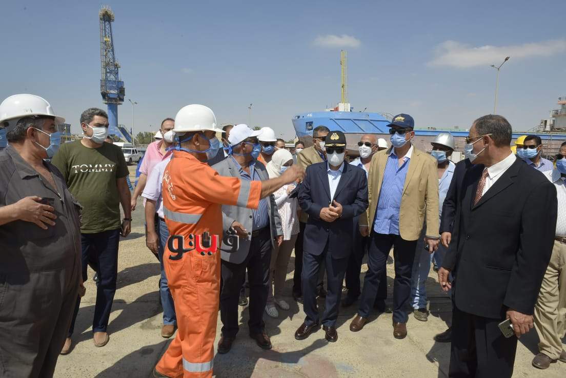 وخلال جولته بترسانة بورتوفيق البحرية تفقد رئيس الهيئة كل من مصنع الفايبر جلاس، وورش الآلات والمخازن، وساحة الإصلاحات بالترسانة، والقزق الميكانيكي بقدرة رفع ٢٠٠٠ طن.