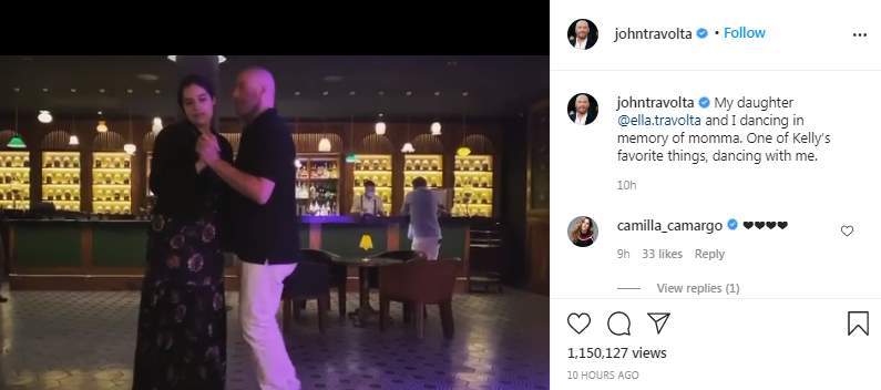 وبث جون ترافولتا فيديو عبر حسابه الرسمي بإنستجرام وهو يرقص مع ابنته قائلًا: "أنا وابنتي إيلا نرقص لنحيي ذكرى زوجتي. هذه كانت أحد الأشياء المفضلة التي كانت تفعلها معي"