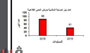 وصل عـدد بؤر إصابة الماشية بمرض الحمى القلاعية 41 بؤرة عام 2019 مقابل 86 بؤرة عام 2018، وذلك طبقًا للنشرة السنوية لإحصاءات أمـراض الحيوان والدواجن لعام 2019، الصادرة عن الجهاز المركزي للتعبئة العامة والإحصاء.