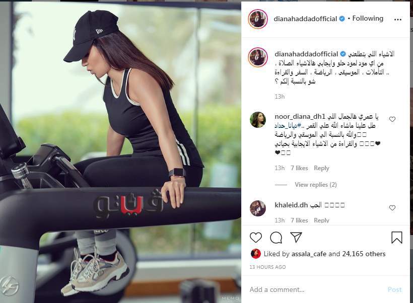 وعلقت ديانا على الصورة قائلة «الاشياء اللي بتطلعني من أي مود لمود حلو وإيجابي هالاشياء الصلاة ، التأملات ، الموسيقى ، الرياضة ، السفر والقراءة».