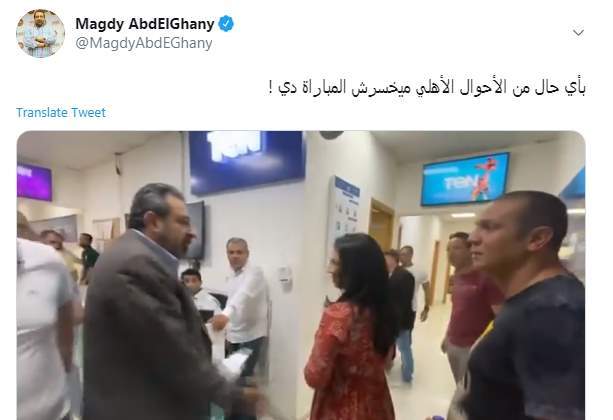 وكتب مجدي عبد الغني تغريدة على تويتر قال فيها: "بأي حال من الأحوال الأهلي ميخسرش المباراة دي".
