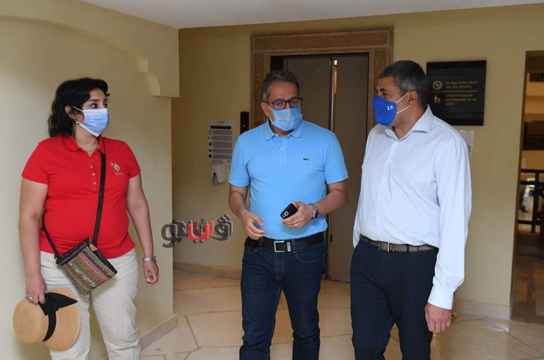وقام الدكتور خالد العناني وزير السياحة والآثار والأمين العام للمنظمة بتفقد الإجراءات الوقائية التي يتبعها الفندق منذ الدخول من باب الفندق وإجراءات تطهير الأمتعة وقياس درجات حرارة الضيوف وتطهير اليدين، ومنطقة الاستقبال والبهو وإجراءات التسكين ومنطقة المطاعم والمطابخ والبرجولات وحمامات السباحة، والممرات الداخلية والممشى الخارجي ومنطقة الشاطئ.