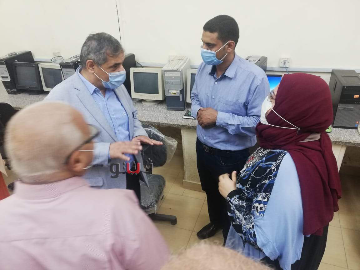 واطمئن نائب رئيس الجامعة على سير أعمال التنسيق الالكتروني لتسجيل رغبات طلاب الثانوية العامة، كما اطمئن على الإجراءات الوقائية التي اتخذتها الجامعة وارتداء الكمامات وتعقيم المعامل وتنظيم عملية الدخول لضمان سلامة الجميع.